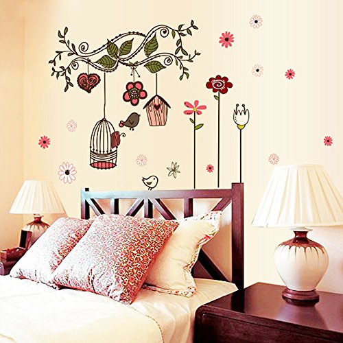 Anself Fiore Rattan Birdcage Lettera autoadesivi smontabili della parete di arte delle decalcomanie murale Carta da parati fai da te per camera decalcomania 70 * 50cm