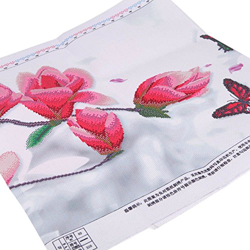 Anself DIY Handmade Ricamo Punto Croce Set ricamo Kit Elegante modello rosa Magnolia progettazione 3D Cross-Stitching 124 * 48 centimetri Home Decoration