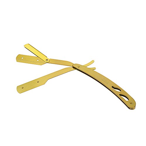 Anself Rasoio a mano libera da barba in Acciaioinox per Uomo, Oro 14cm