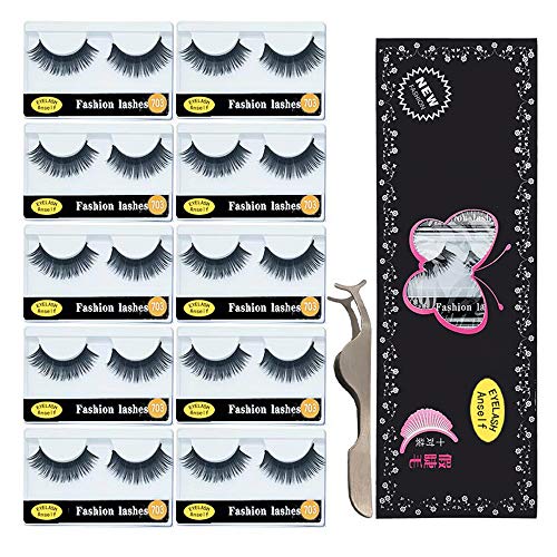Anself Stesso 10 paia Ciglia finte con ciglia finte Applicatore Ciglia ricci lunghe e spesse Ciglia per trucco Strisce per trucco occhi