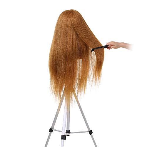 Anself Testa di addestramento 25,59 pollici Testa di manichino dorata per capelli umani al 70% per parrucchiere Testa di addestramento professionale (il supporto per la testa NON è incluso)
