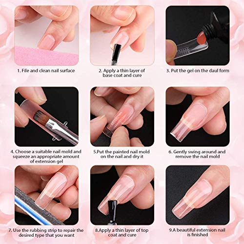 【Set di gel di estensione di base】kit gel unghie contiene 3 colori di gel di estensione, ogni colore di gel di estensione contiene 15 ml.Inoltre, vengono inviati 100 vassoi per unghie finte per creare una nuova nail art. Anche i principianti possono fare delle belle estensioni delle unghie in pochi minuti. Dopo un uso corretto, la durata può essere fino a due settimane.