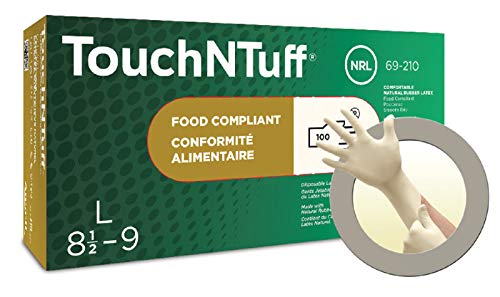 Ansell TouchNTuff 69-210 Guanto in lattice, Protezione Contro le Sostanze Chimiche e Liquide, Naturale, Taglia 8.5-9 (100 Guanti)