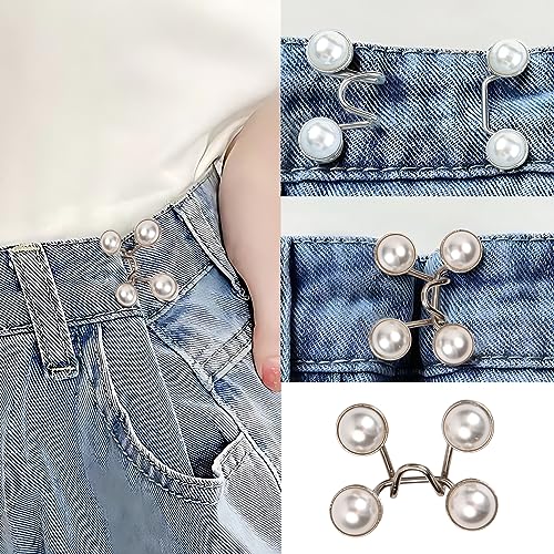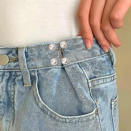 Anseom Bottone in Vita Senza Cuciture, 4 Paia Tenditore in Vita per Pantaloni Senza Cucitura Bottoni in Vita Clip per Pantaloni Regolabili per Abito Jeans (perla)