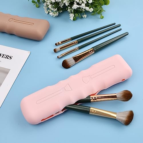 Anseom 2 Pezzi Porta Pennelli da Trucco da Silicone Supporto per Pennelli da Trucco da Viaggio con Chiusura Magnetica Custodia per Pennelli da Trucco da Portatile per Regali Viaggi (Rosa, Khaki)