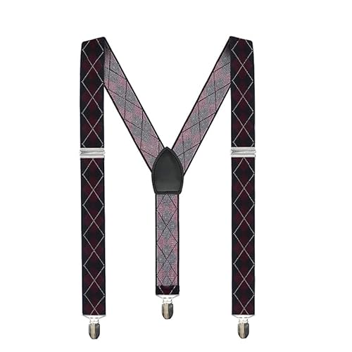 Anshili 2 bretelle da uomo con 1 cravatta, 3 clip a Y, larghezza 3,5 cm, nero+rosso, Taglia unica