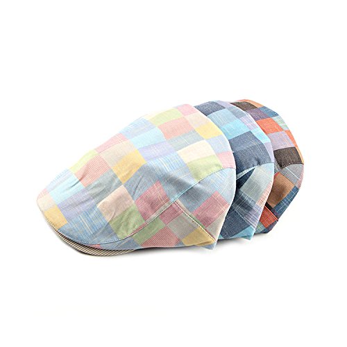 Anshili Uomo Cotone Cappello Motivo Scozzese Beret Primavera (Rosso)