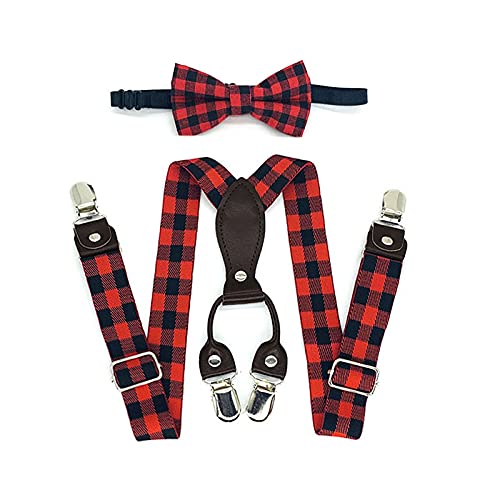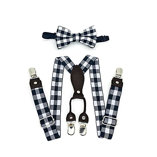Anshili 2 Pezzi Bambini Bretelle 4 Clips cravatta a farfalla larghe 2,5 cm Lingge (A)