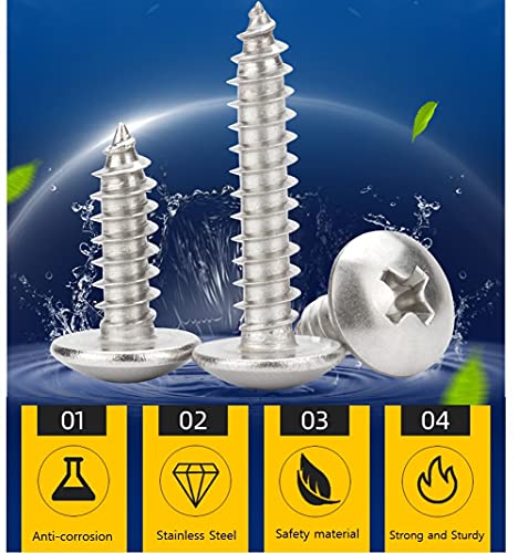 ANSIEDIO Viti Autofilettanti per Legno - Viti per Legno, Viti a Croce a Testa Tonda Testa di Fungo in Acciaio Inossidabile M5×25mm,20 pcs