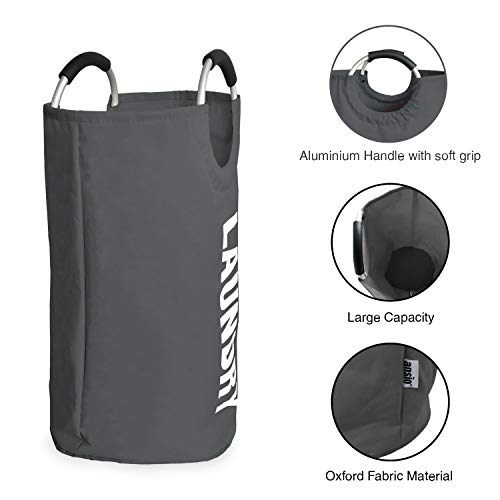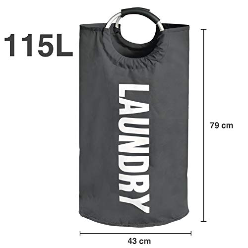 Ansio, Cesto portabiancheria in tessuto Oxford, 115 l, con maniglie, per biancheria, camera da letto e bagno, colore: grigio scuro