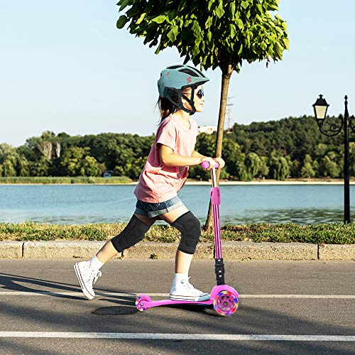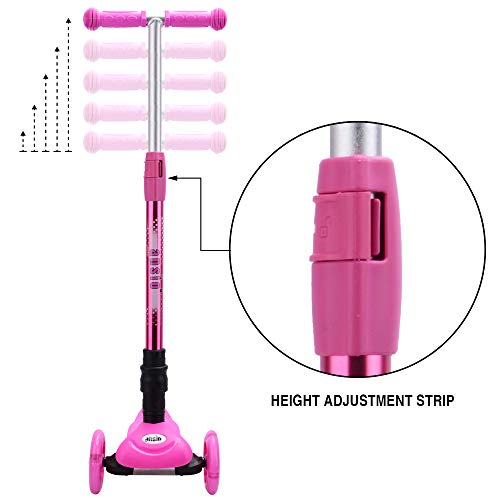 ANSIO Monopattino per ragazzi e ragazze, 3 ruote per bambini, scooter con altezza regolabile, scooter a LED, multicolore, età compresa tra 3 e 9 anni, colore: rosa