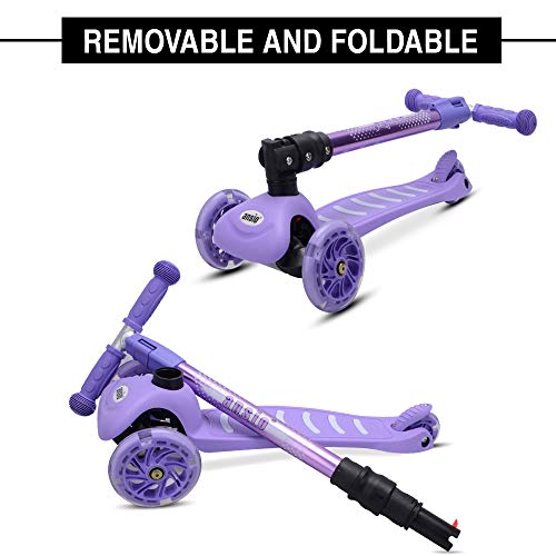 ANSIO Monopattino per ragazzi e ragazze, 3 ruote per bambini, scooter con altezza regolabile, scooter a LED, multicolore, età compresa tra 3 e 9 anni, colore: viola