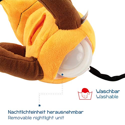 Il Peluche è illuminata in modo eccezionale, il che produce una piacevole luminosità di fondo nella cameretta del bambino. Aiuta a far dormire e può essere utilizzato anche come luce di orientamento per tutte le età. La luce notturna accesa in cameretta può essere di aiuto se il bambino si sveglia la notte e lei desidera di andare a controllare.
