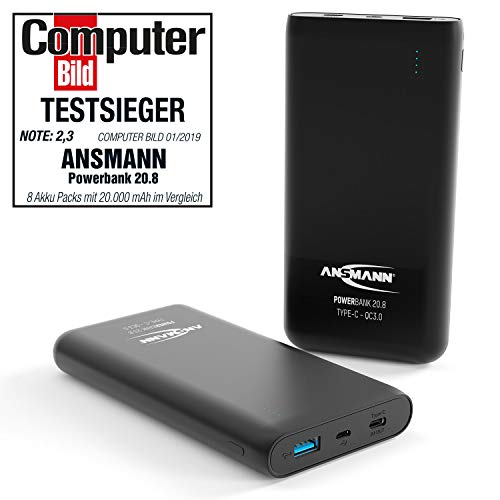 ANSMANN Powerbank 20000mAh Quick Charge 3.0 - Power Bank porta USB e Tipo C - LED Cavo Micro-USB - Caricabatteria per smartphone cellulare tablet