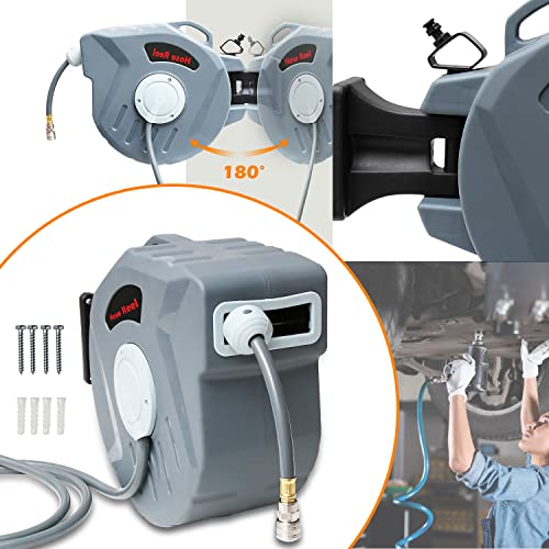 Ansobea Tubo per aria compressa, 20 m, avvolgitubo automatico, avvolgitubo ad aria compressa, attacco rapido 1/4", montaggio a parete per compressore officina