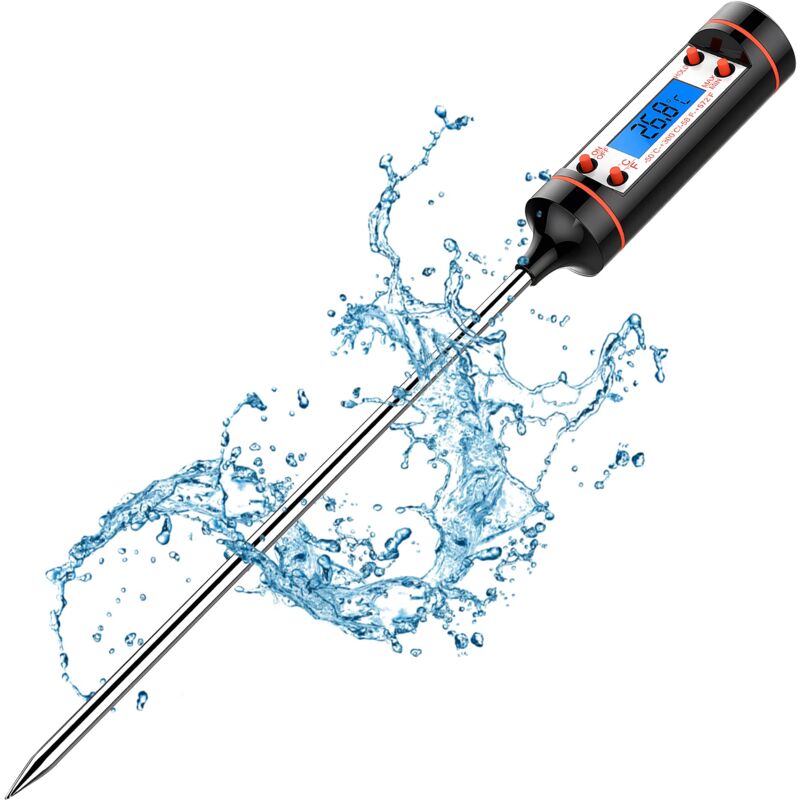 Descrizione This digital thermometer features blue backlight LCD display, anti-corrosion long metal probe and a wide temperature range. Handy and lightweight design meets both indoor and outdoor needs.