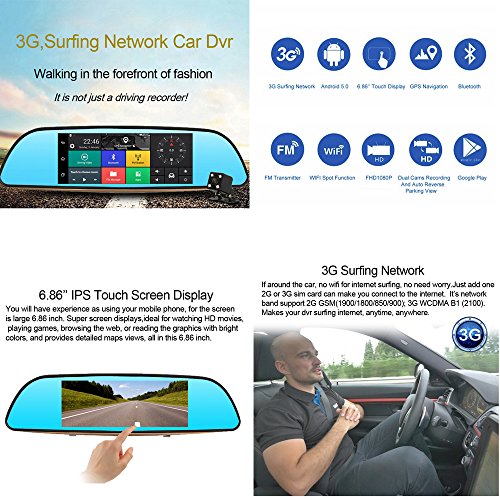 1, 6.86-inch Split view Touch Screen Display This dvr support 2 Split view screen display. GPS navigation and video recording will be display simultaneously on the 6.86inch screen. It also provides instant video playback. Prove your innocence in seconds whilst remaining on the road. Moreover, you see a movie when you are free or waiting for some one to enjoy the seconds in the car.