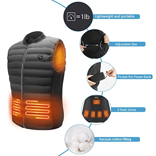 Antelife ha riscaldato il gilet per gli uomini e le donne, USB elettrico riscaldato gilet, 3 livelli di temperatura giacca riscaldata elettrica, cappotti caldi per l'inverno all'aperto campeggio (S)