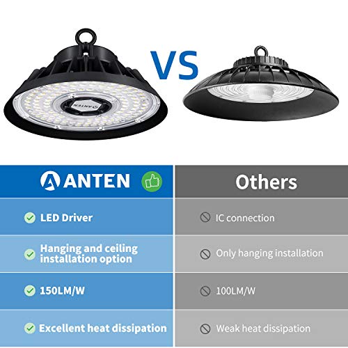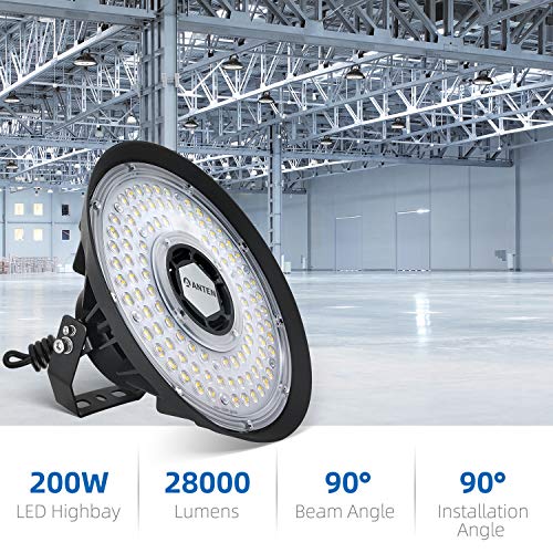 Anten Faretto a LED da 200W 5000K, Luce Bianca Diurna, Rifrazione delle Lenti, con Supporto Regolabile, Angolo di Diffusione di 90°, Grado di Impermeabilità IP65, per Garage, Palestra, Officina, ecc