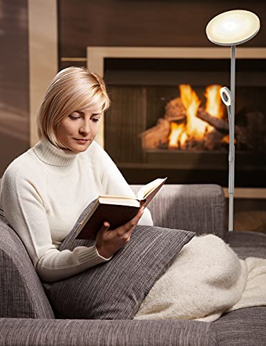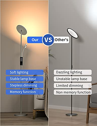 Anten Grigio Lampada LED da Terra Dimmerabile, Lampada da Pavimento a Doppia Luce, 30W e 5W, 3650LM Illuminazione da Pavimento, 3 Temperature di Colore, per Soggiorno, Camera da Letto, Ufficio