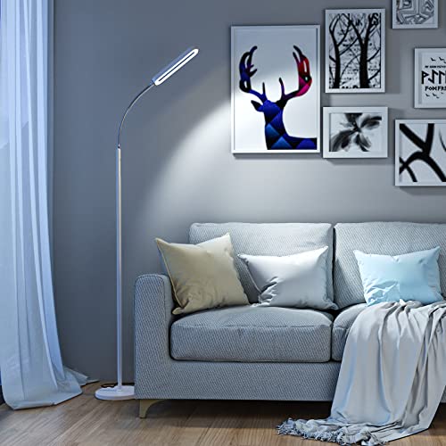 Anten Lampada da Terra Bianco 12W | 1200lm Lampada LED Dimmerabile con Telecomando & Controllo Tattile | Piantana led da terra con Collo d'oca Regolabile per Salotto Ufficio Sala Lettura Studio