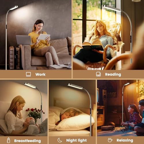 Anten Lampada da Terra Nichel 12W Piantana Lampada da Terra 4 Temperature di Colore con Dimmerazione Continua | Telecomando e Touch Control | 1H Timer | Lampada LED per Salotto, Camera da letto
