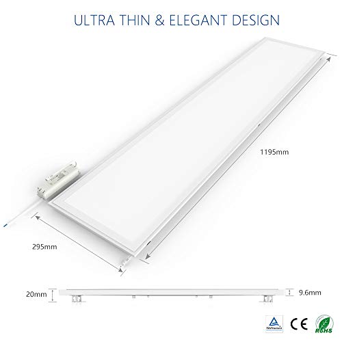 Anten Pannello LED, Plafoniera da Ufficio Lampada, Pannello Luminoso a Soffitto, Luce Fluorescente, Lampada da Soffitto, 40W, 2700 Lumen, Bianca Calda, 120x30 cm