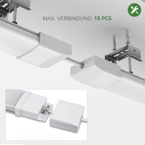 Anten Plafoniere da ufficio, 18W 60CM LED IP65 Luminaire Officina Luce, 1500LM Officina LED Tubo Lampada, Impermeabile Luce per Ufficio, Magazzino