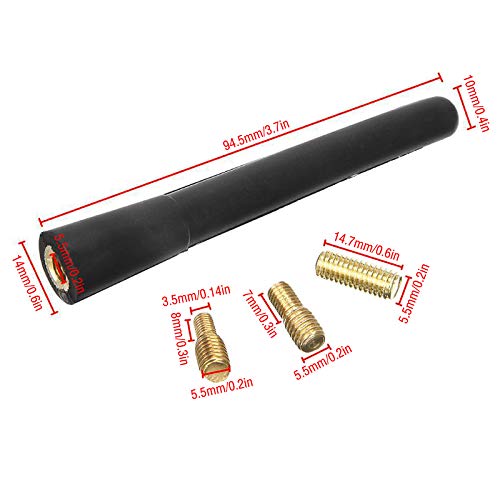 【Universal Fitmnet】 Antenna corta per auto nera di qualità adatta per la maggior parte delle auto con antenna radio avvitata, dotata di 3 diverse dimensioni di viti, si prega di leggere le dimensioni mostrate nell'immagine per garantire una vestibilità perfetta prima di acquistare.