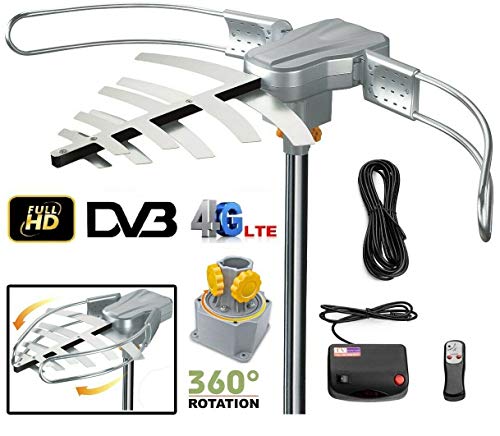 Antenna TV esterna girevole Full HD UHF 30+5 DB TV TDT DVB-T con telecomando