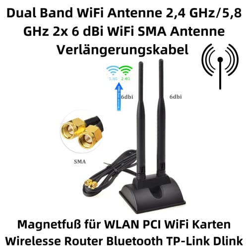A23D Dual Band WiFi Antenna 2,4 GHz/5,8 GHz 2 X 6 dBi WiFi SMA Cavo di prolunga 3 m con supporto magnetico