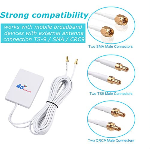 Antenna 4G LTE ad alto guadagno, antenna LTE a doppio connettore 28dbi router mobile con cavi da 2,9 m,adattatore modem amplificatore amplificatore di segnale WiFi TS-9/SMA/CRC9 Jack(TS9 Jack)