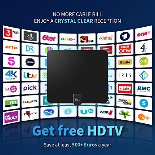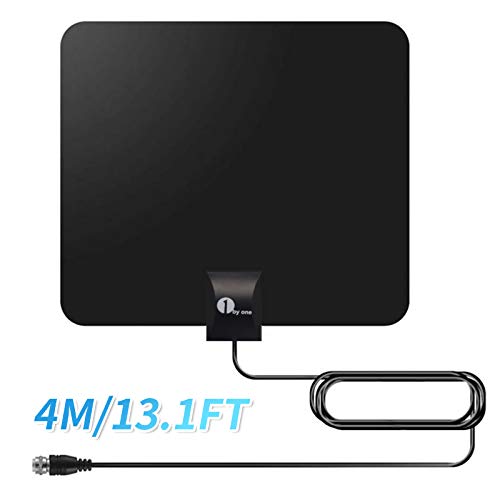 Antenna Interna TV, 1byone tv antenna per DTT DVB-T/DVB-T 2 per TV con Digitale, Antenna HDTV per VHF/UHF/FM,con 4m di Cavo, Alte Prestazioni-Nera