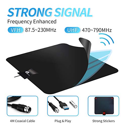 Ultra sottile: ultra sottile, leggero e salvaspazio. Il design sottile della carta è facile da installare e da nascondere. È possibile posizionare l'antenna da interni sul tavolo, attaccarla alla parete o alla finestra (si consiglia di alzare).