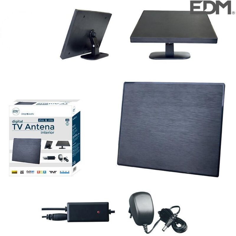 Antenna tv interna uhf edm uhf 470-862 mhz design series vhf 28db impedenza 75 ohm3db 220-230v ac/dc adattatore 6v 100ma 188x155x13,5mm