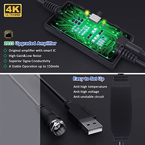 【Segnale forte】 Antenna TV dotata del nuovissimo amplificatore di segnale, chip intelligente integrato e tecnologia di filtro trasparente. La tecnologia filtra i segnali cellulari e FM, fornendo un'immagine più chiara e colorata, basso rumore e accesso a più canali televisivi gratuiti.