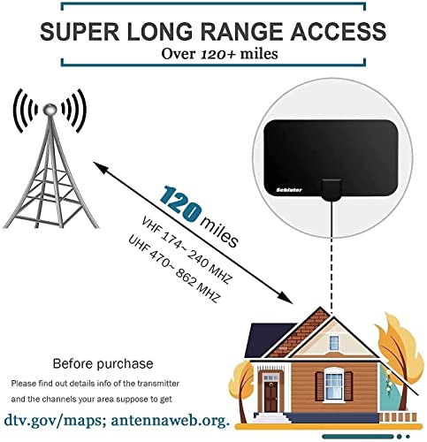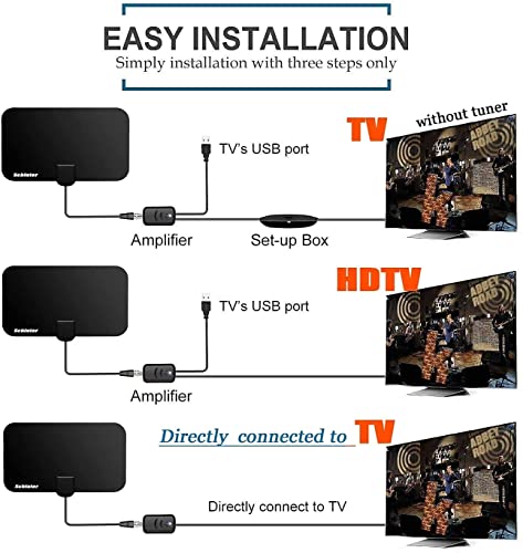 Antenna TV, Antenna TV Interna, Antenna HDTV Digitale 150+ Miglia Amplificata con Amplificatore di Segnale Support 4K HD/VHF/UHF per Home Smart Televisione/Radio