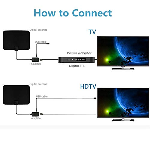 HDTV Antenna, Antenna TV Interna per DTT DVB-T/DVB-T 2 per TV 80 Miglia Range Amplificatore di Segnale,1080p Full HD ad Alta Ricezione con Alimentatore USB & Cavo coassiale 16,5FT (Antenna TV Nera)