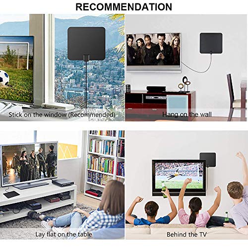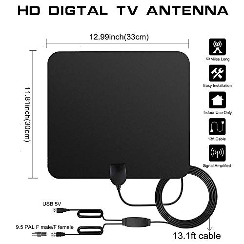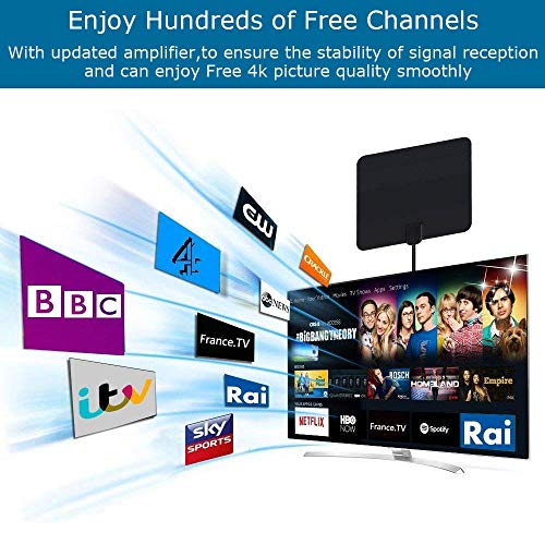 TV Antenna Interna 60 miglia, Digital Freeview TV Antenna HDTV per DTT DVB-T/ DVB-T2, Super Sottile e Alta Ricezione, Amplificatore Segnale e Cavo Coassiale da 13.1 FT Supporto 4K VHF/ UHF/ FM - Nero