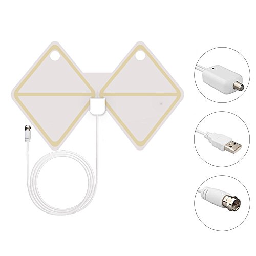 Antenna TV Interna, YUTON 1080P 80KM / 50 Mile Digitale Antenna HDTV Portatile con Staccabile Amplificatore Booster and USB Power Cavo, per DTT DVB-T/DVB-T 2 con 4M Cavo Coassiale
