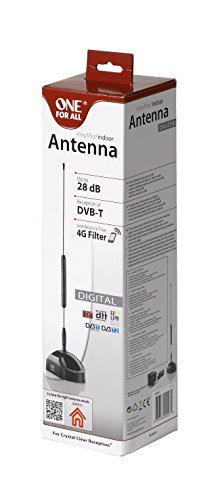 Antenna da interni amplificata One For All - Pronta per il DTT nel raggio di 5km -Antenna digitale regolabile- Antena Interna HDTV -nera - SV9311, nero
