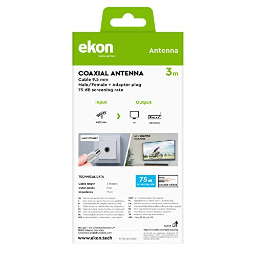 Ekon cavo antenna TV, cavo antenna, maschio femmina, 3 metri, 75 dB, per TV, smart TV, decoder, digitale terrestre