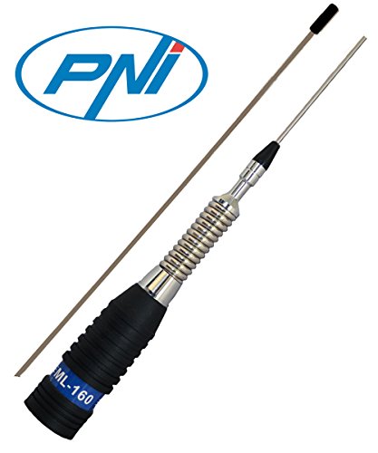 Antenna CB PNI ML160, lunga 145 cm, senza cavo, compatibile con qualsiasi radio CB, nero, inox