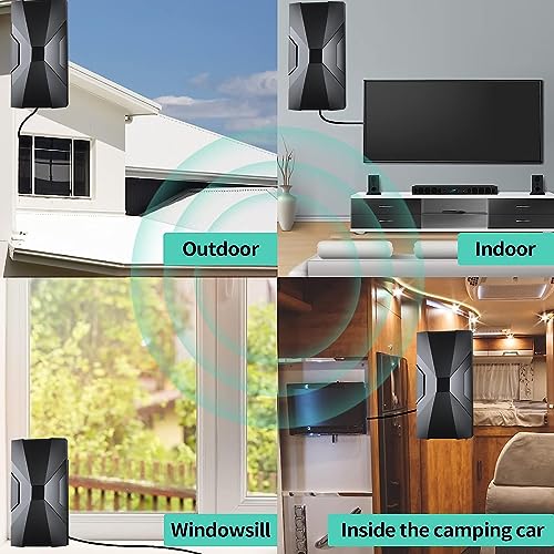 Antenna TV per interni/esterni: l'antenna digitale non solo supporta l'uso interno ed esterno, ma può anche essere utilizzata in condizioni meteorologiche pubblicitarie. Non è influenzato da temporali. Si attacca facilmente alla parete e al tavolo/utilizzare nylon per fissare l'antenna all'aperto/utilizzare viti per fissare l'antenna alla parete.