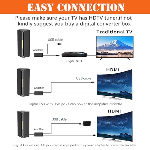 【Cavo coassiale da 5 m e amplificatore integrato】 L'amplificatore integrato del segnale Booster può amplificare il segnale non appena viene ricevuto per garantire la migliore ricezione del segnale. Cavo coassiale extra lungo ad alte prestazioni e durevole assicura che le antenne possano essere posizionate ovunque nella vostra casa per raggiungere i migliori segnali e la ricezione più forte