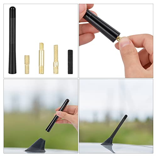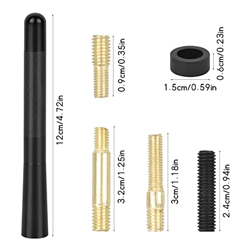 12 cm Antenna Auto Universale, Antenna per Asta Corta Fibra di Carbonio con Anelli Gomma, Viti M4 M5 M6, DAB/FM Antenna a Stelo Autoradio Tetto Ricambio per Auto Camion SUV, Potente Funzione Ricezione