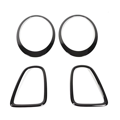 Faro Anteriore e Copertura della Cornice della Luce della Lampada Posteriore, 4 Pezzi Nero Lucido Fanale Posteriore e Cornice del Faro Shell Trim cap per Mini R56 R57 R58 R59 per S JCW dal 2007