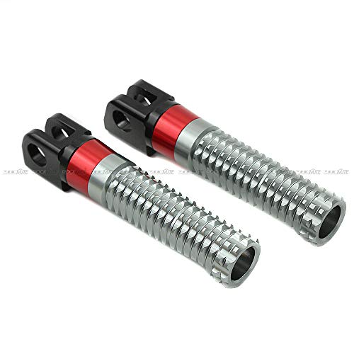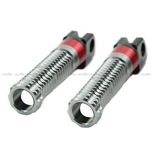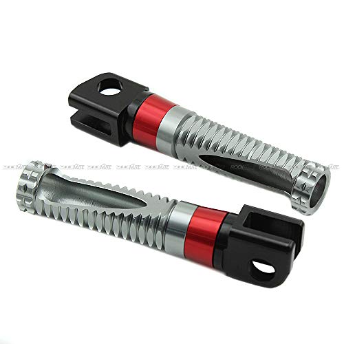 Caratteristiche: Realizzato con materie prime di alta qualità. Realizzato da macchina CNC. I picchetti sono incisi da un pezzo in lega di alluminio. Non dalla muffa. Poggiapiedi antiscivolo 3D riprogettato. Impossibile per qualsiasi incidente di scorrimento. Combinazione di colori personalizzata. Elegante la tua moto e abbinalo allo stile della bici. Sostituzione diretta dei picchetti originali. Nessuna modifica necessaria.