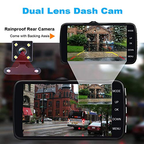 【Ampio schermo IPS da 10,2 cm e grandangolo da 170°】 La Dash Cam è dotata di 1080p Full HD ad alta definizione con grandangolo di 170 gradi e obiettivo 6G, che può catturare le targhe auto, cartelli stradali e altre cose, registrare video cristallini, mostrando su un grande schermo IPS da 10,2 cm.
