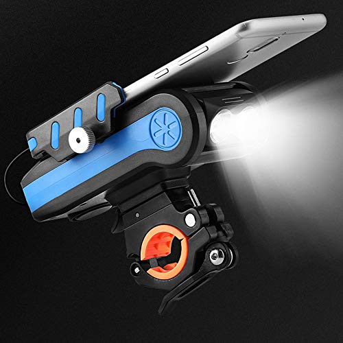 Set di luci anteriori per bici ricaricabili USB, 4-in-1 LED impermeabile luminoso ciclismo luce con corno per bicicletta, supporto per telefono e power bank, facile installazione per moto e bici nero